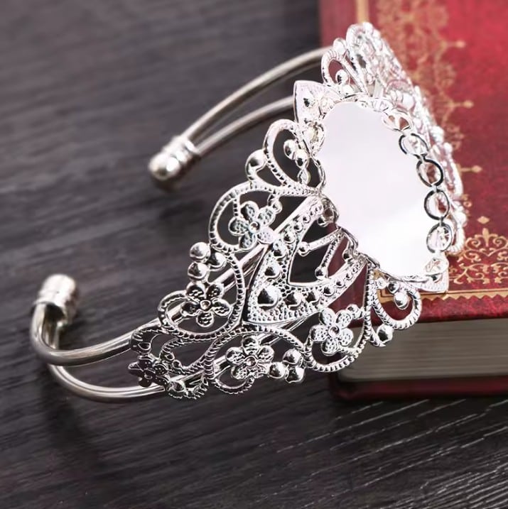 B104 – 1 pc. Silver Plated Open Cuff Bangle Bezel Cabochon Bracelets – 25mm x 18mm Glue Pad – 16.5cm (6.5″) – Oval – 25x18mm – 18x25mm