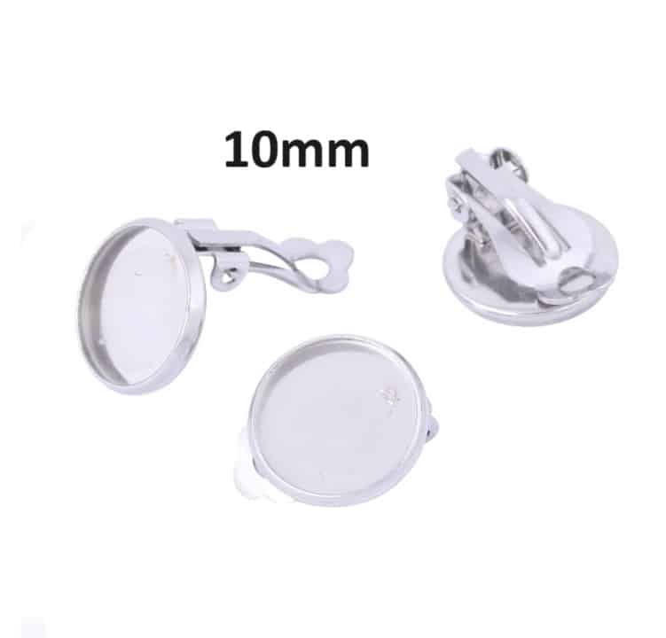 Tags: 10mm, 10mm Glue Pad, 304 Stainless Steel, cabochons, Earring Clips, Hinged Bezels, settings, Silver Tone