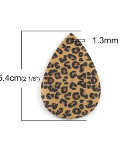 P1189 – 10 pcs. Leopard Faux Leather Dangle Charms Pendants – Teardrop – Black and Yellow – 54mm (2.13″) – Double Sided