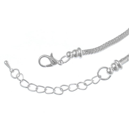 B045A - 1 pc. Silver Plated European Snake Chain Bracelets with Chain Extender - Lobster Claw Clasp - 15cm (5 7/8") - 3mm Thick - Small Wrists