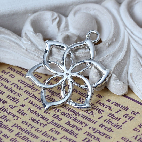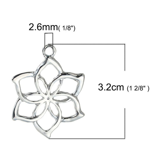 P308 - 1 pc. Silver Plated Lotus Flower Petals Charm Pendant - 32mm X 24mm (1.26" x 1") - LARGE - High Quality!