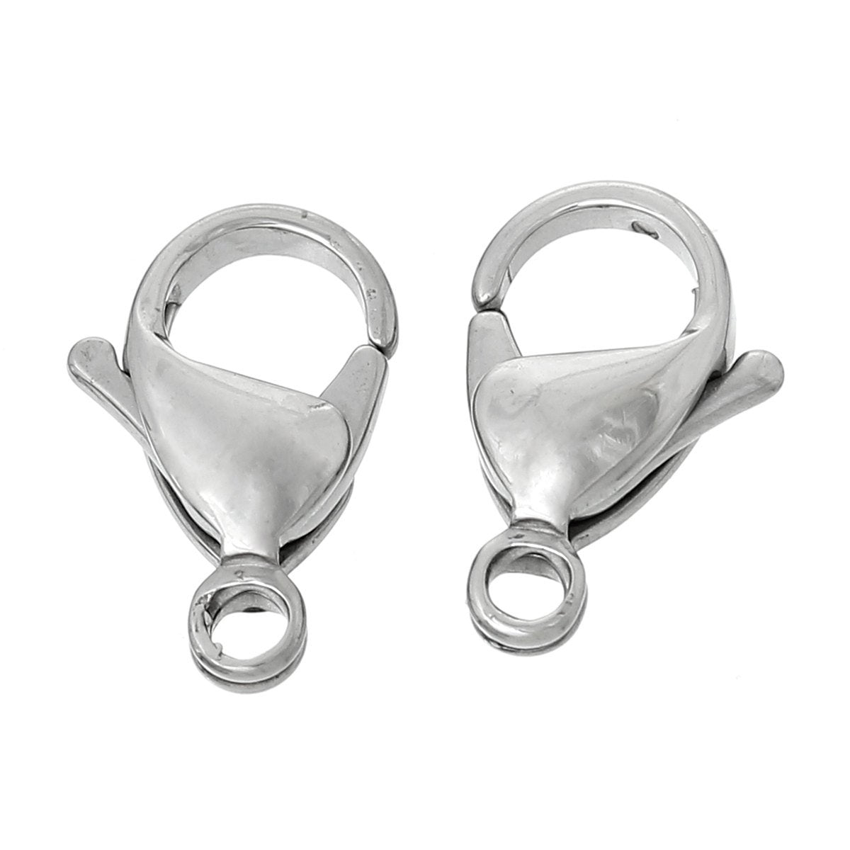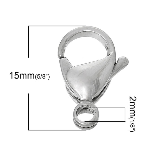 CL044 - 10 pcs. 304 Stainless Steel Lobster Clasps - Silver Tone - 15mm X 9mm - Claw Clasps - Hypoallergenic! Tarnish Resistant!