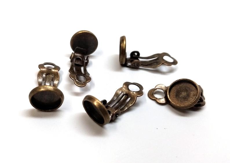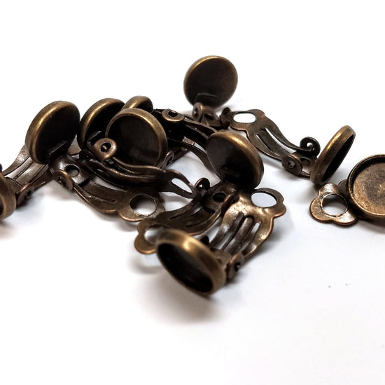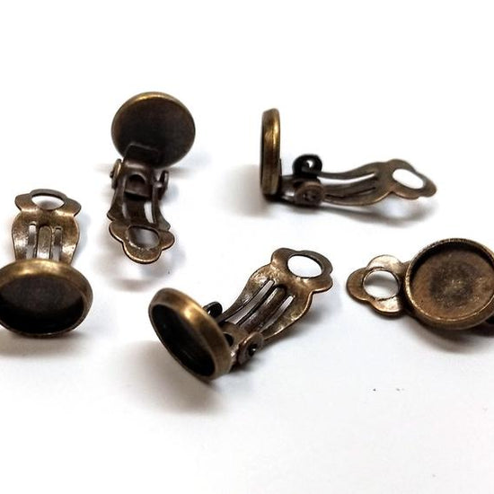 CA716 - 10 pcs. Antique Bronze Earring Clips Settings Hinged Bezels Cabochons - 8mm Glue Pad Setting