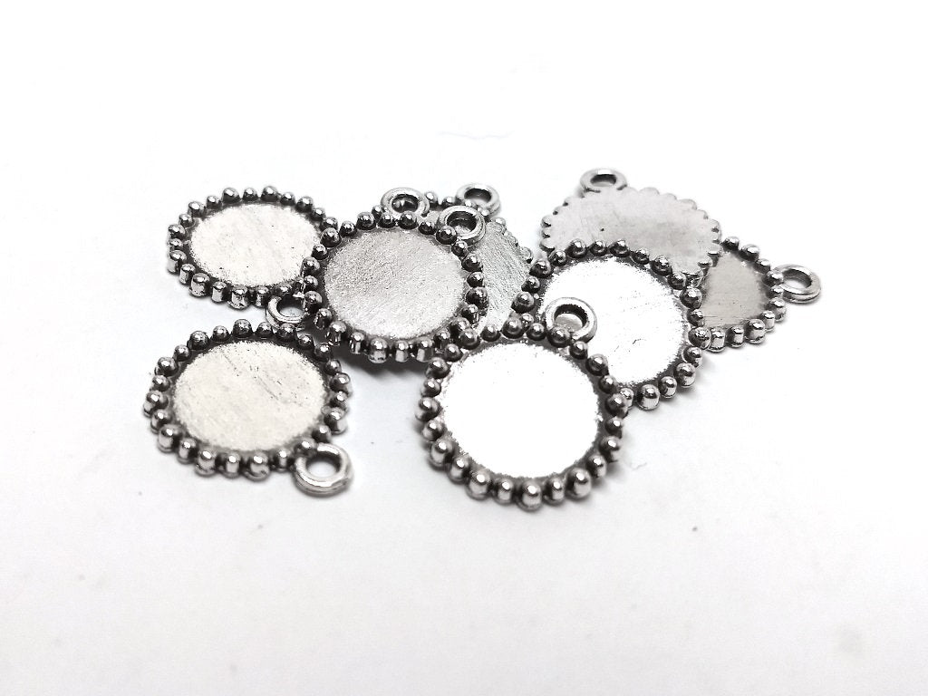 Antique Silver Circle Round Bezel Cabochon Pendant Tags – Bubble Carved Design