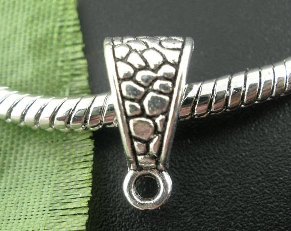 BA017A - 10 pcs. Antique Silver Dangle Triangle Slider Spacer Bails with Loop - 14mm X 7mm - Carved