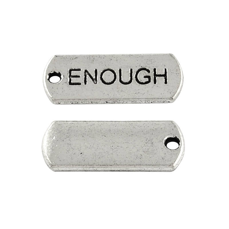Antique Silver “Enough” Rectangle Charms Pendants