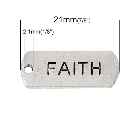 P328 - 10 pcs. Antique Silver "Faith" Rectangle Charms Pendants - 21mm X 8mm