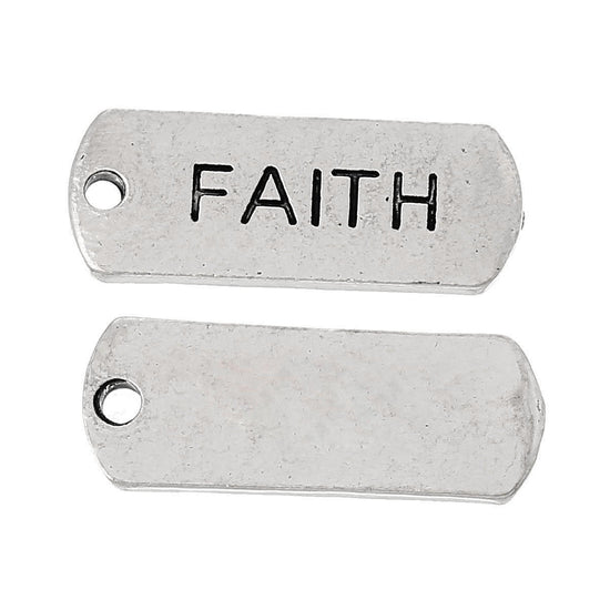 Antique Silver “Faith” Rectangle Charms Pendants