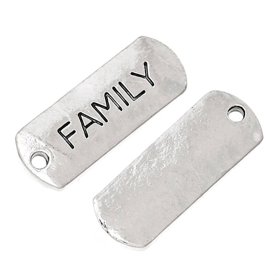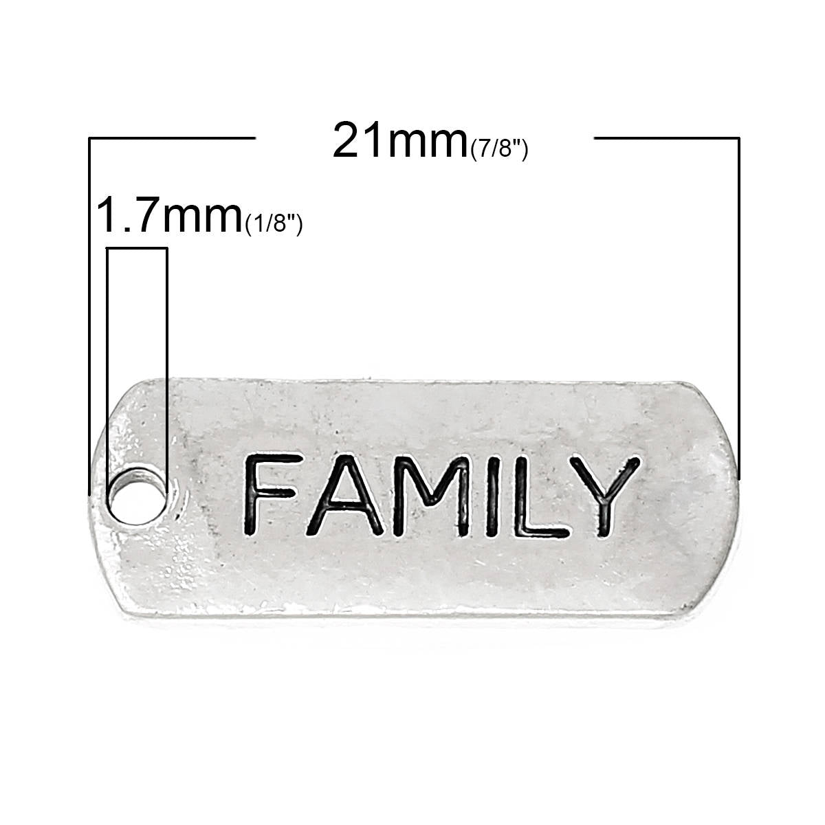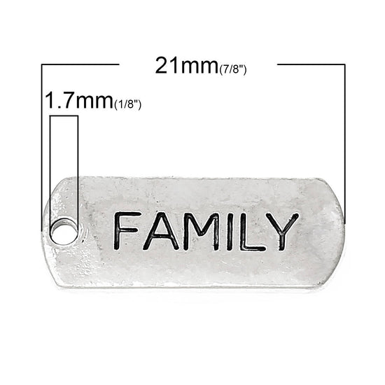 P329 - 10 pcs. Antique Silver "Family" Rectangle Charms Pendants - 21mm X 8mm