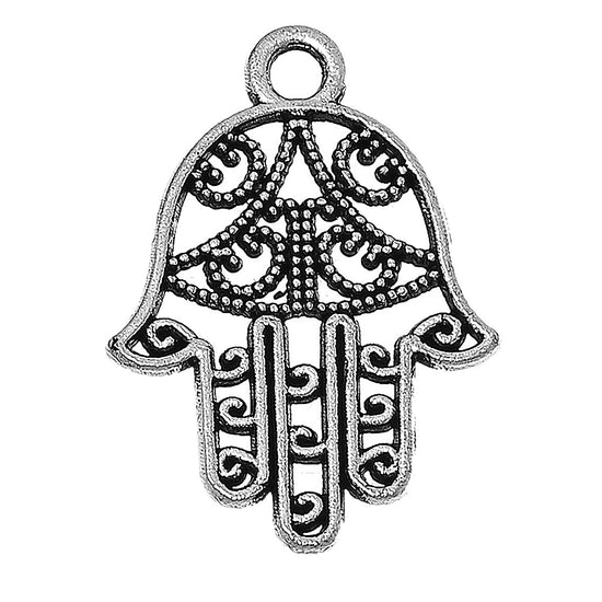P125 - 10 pcs. Antique Silver Hamsa Hand Symbol Charms Pendants - 21mm x 15mm