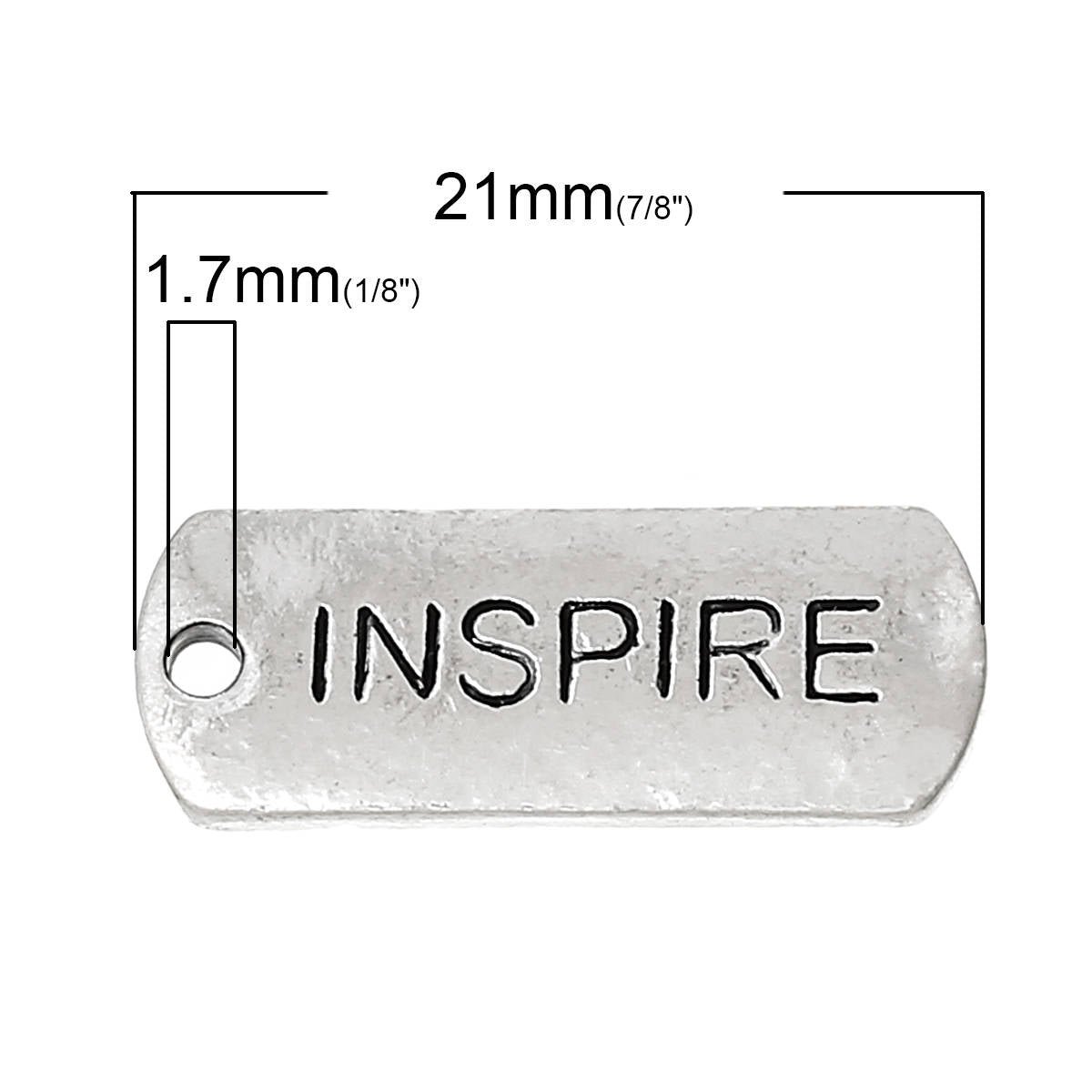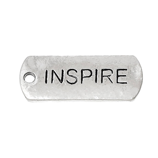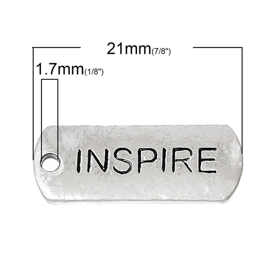 P687A - 10 pcs. Antique Silver "Inspire" Rectangle Charms Pendants - 21mm X 8mm - Hole Size: 1.7mm
