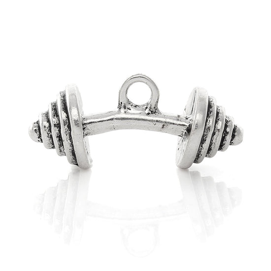 Antique Silver Spiral Curved Dumbbell Gym Weight Charms Pendants