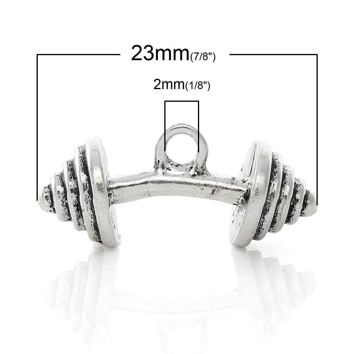 P275 - 10 pcs. Antique Silver Spiral Curved Dumbbell Gym Weight Charms Pendants - 23mm X 10mm (0.91 x 0.4 inch) - Hole Size: 2mm