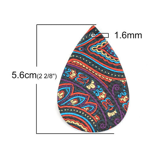 P231 - 10 pcs. Black and Blue Multicolor Filigree Floral Faux Leather Dangle Charms Pendants - Teardrop - 56mm (2.2") - Double Sided