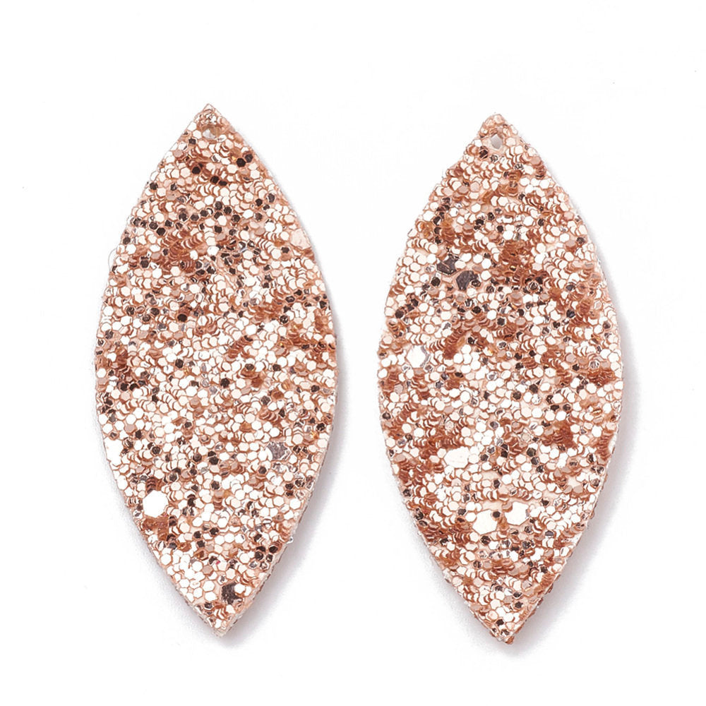 P167 - 10 pcs. Champagne Gold Faux Leather Dangle Charms Pendants - Marquise - 59mm (2.33") - Great for Light Earrings, Necklaces or Dangles!