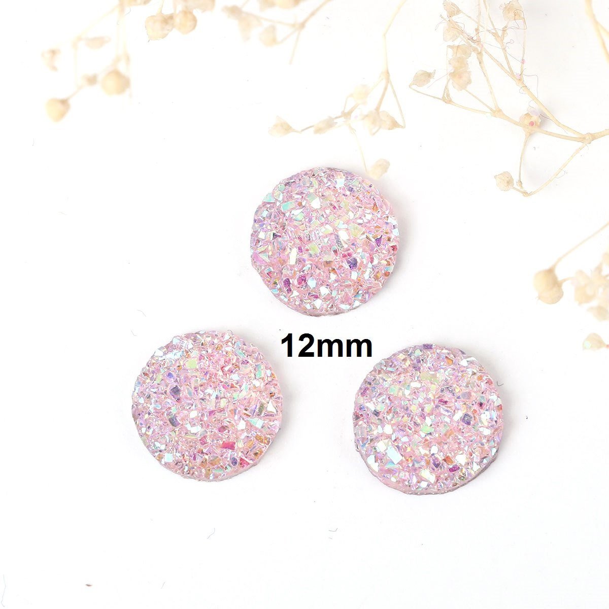 CA052 - 10 pcs Druzy Resin Embellishment Cabochons Light Pink Blush - 12mm - Dome Circle