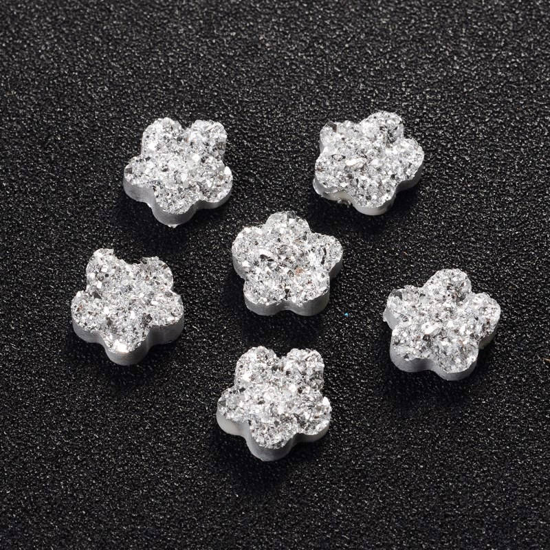 Druzy Resin Embellishment Cabochons Silver – Flower