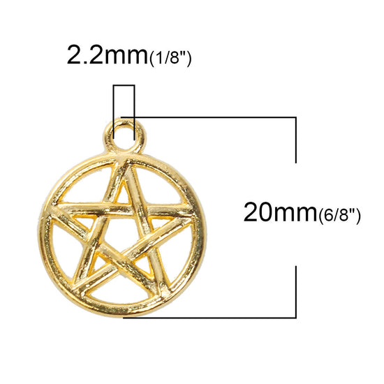 P786A - 10 pcs. Gold Plated Pentagram Charms Pendants - 20mm X 17mm - Hole Size: 2.2mm
