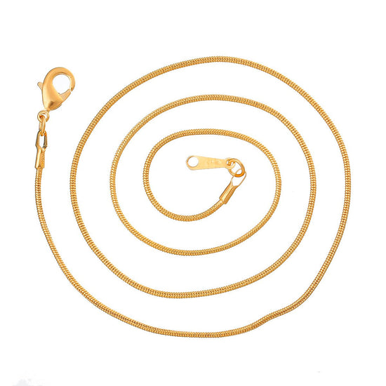N019 - 10 pcs. Gold Plated Snake Chain Necklaces 18" - (1.2mm) - Claw Clasps - Lobster Clasps