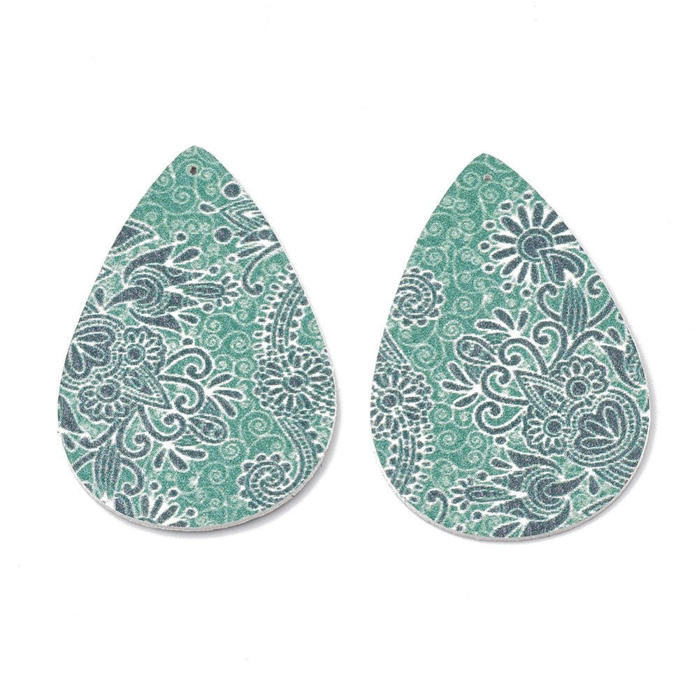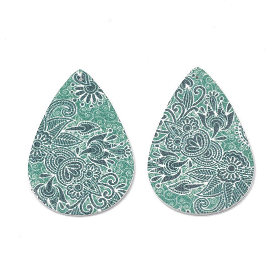 P263 - 10 pcs. Green Filigree Floral Faux Leather Dangle Charms Pendants - Teardrop - 55mm (2.17") - Double Sided - Great for Earrings!