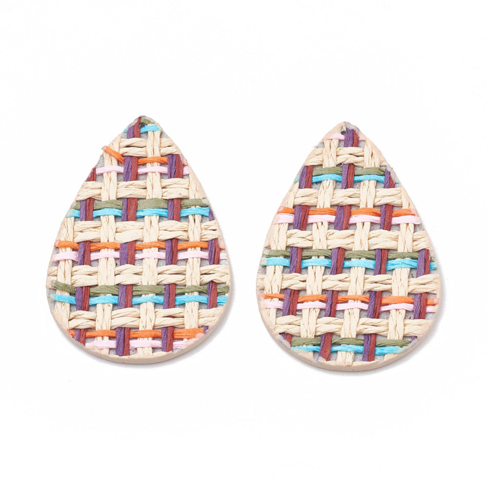 P246 - 10 pcs. Multicolor Faux Leather Dangle Charms Pendants - Teardrop Embroidered Weave - 56mm (2.2") - Great for Earrings or Dangles!