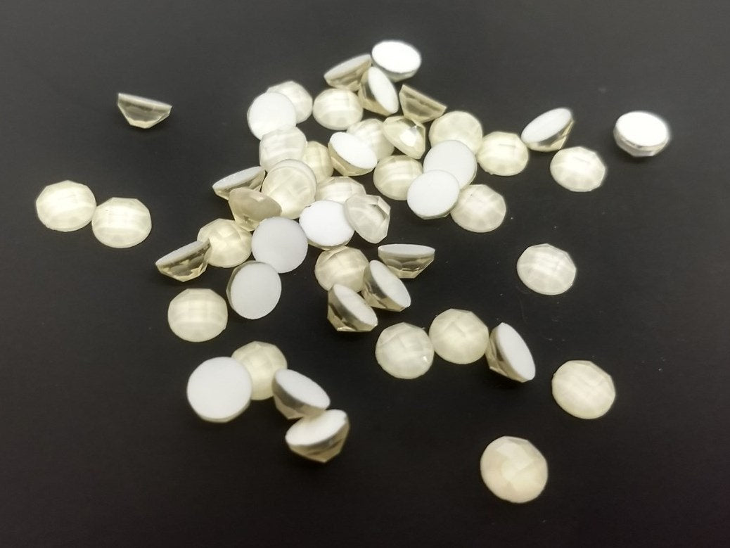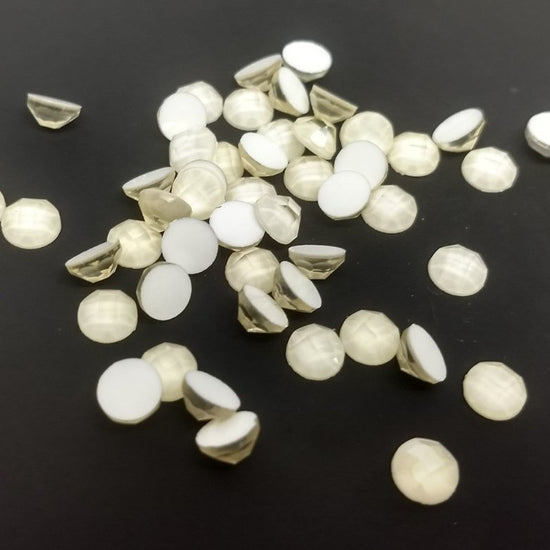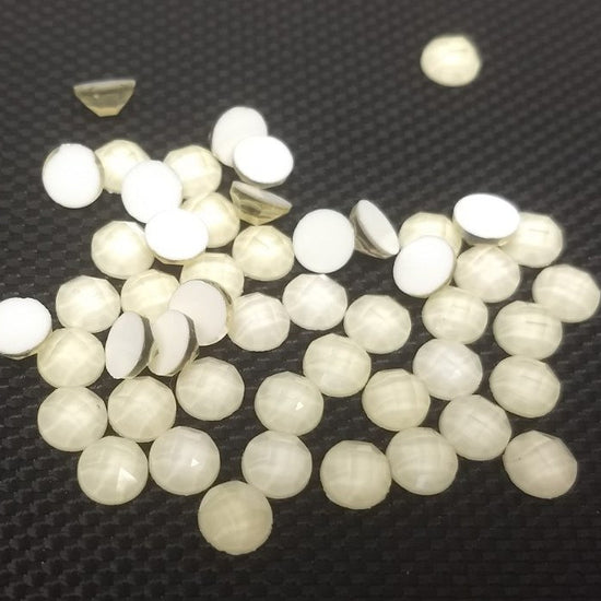 CA019 - 10 pcs Resin Embellishment Cabochons White Ivory Cream - 6mm - Dome Faceted Design - Flat Backs