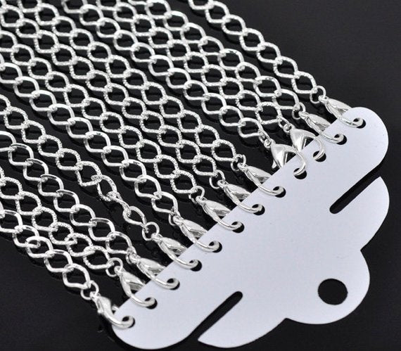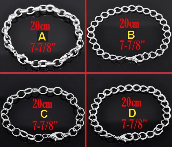 B009 - 10 pcs. Silver Plated Chain Link Bracelets with Lobster Clasps - 7 7/8 in (20 cm) - Style B - Claw Clasps