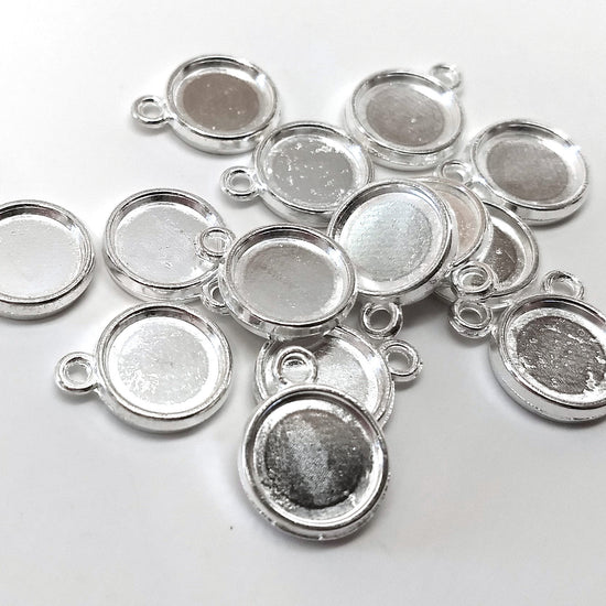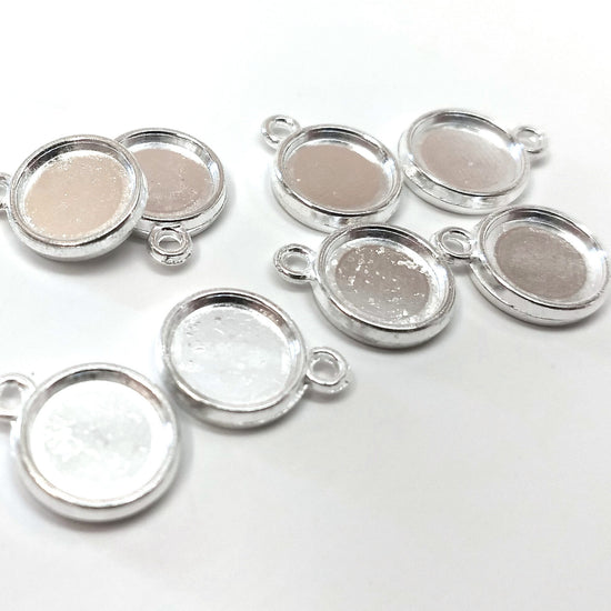 Silver Tone Circle Round Bezel Cabochon Pendant Trays – Double Sided – Single Loop