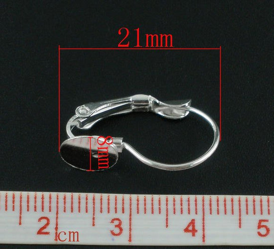 E305 - 10 pcs. Silver Plated Earring Clips Settings Lever Back Posts Cabochons - 8mm Glue Pad Setting