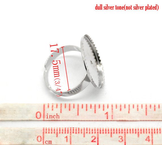 RB014 - 10 pcs. Silver Tone ADJUSTABLE Cabochon Setting Bezel RING bases settings - Ring Size 7 US - Glue Pad 20mm