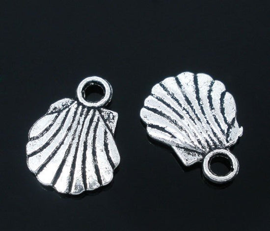 P302 - 10 pcs Silver Tone Beach Scallop Shell Charms Pendants- 12mm