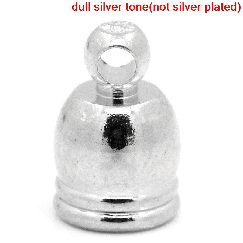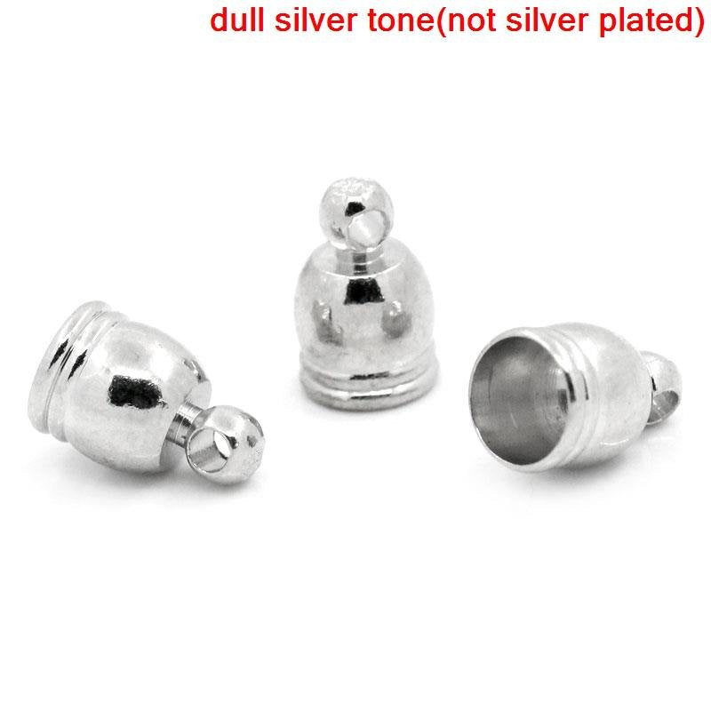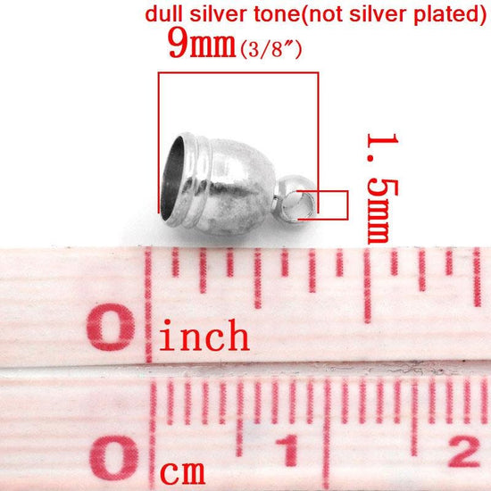 CR003 - 10 pcs. Silver Tone Bracelet and Necklace End Tips Caps with Loop - 9x6mm - For 5mm Cords and as Tassel Covers!