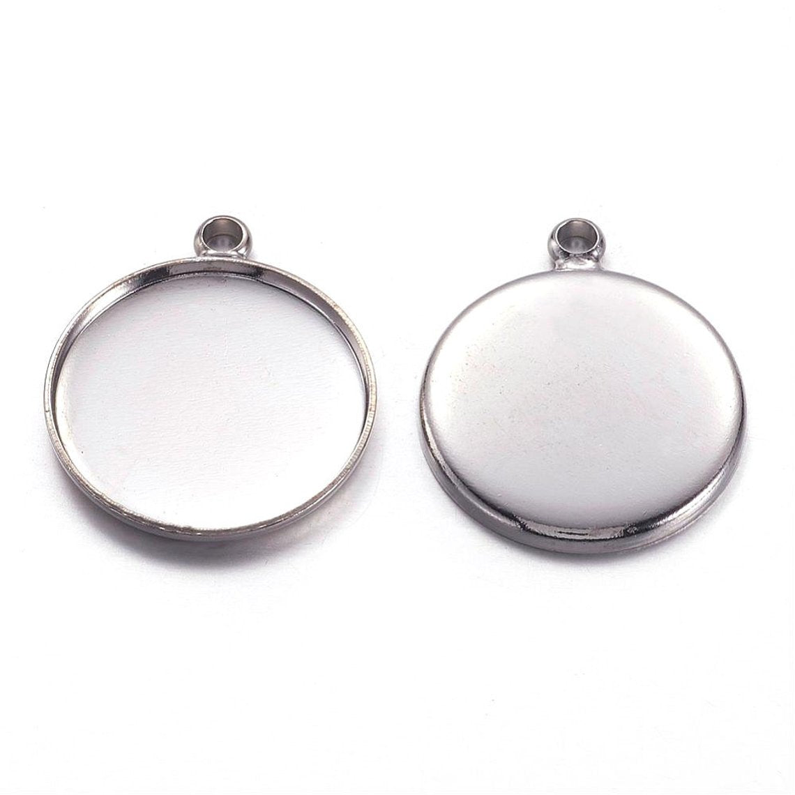 Silver Tone Circle Round Bezel Cabochon Pendant Tags – Very nice quality!