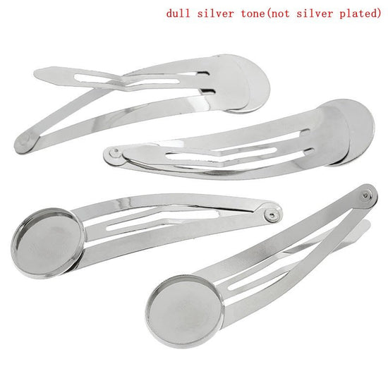 H023 - 10 pcs. - Silver Tone Hair Banana Clips Cabochons Bezels - 60mm x 18mm - (2.36" x 0.71") - 16mm Glue Pad