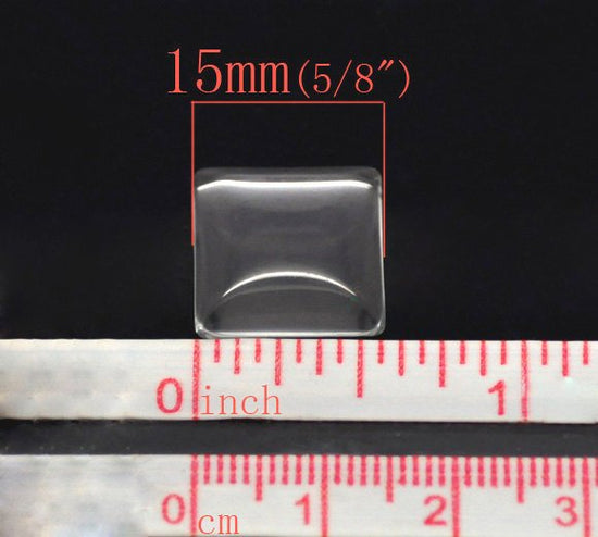 CA005 - 10 pcs. Square Clear Glass Dome Seals Tiles - 15mm - 4mm Thick