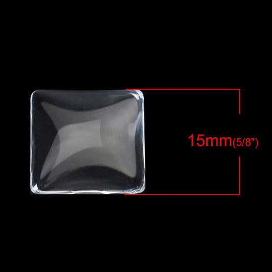 CA033 - 10 pcs. Square Clear Glass Dome Seals Tiles - 15mm - 5.3mm Thick