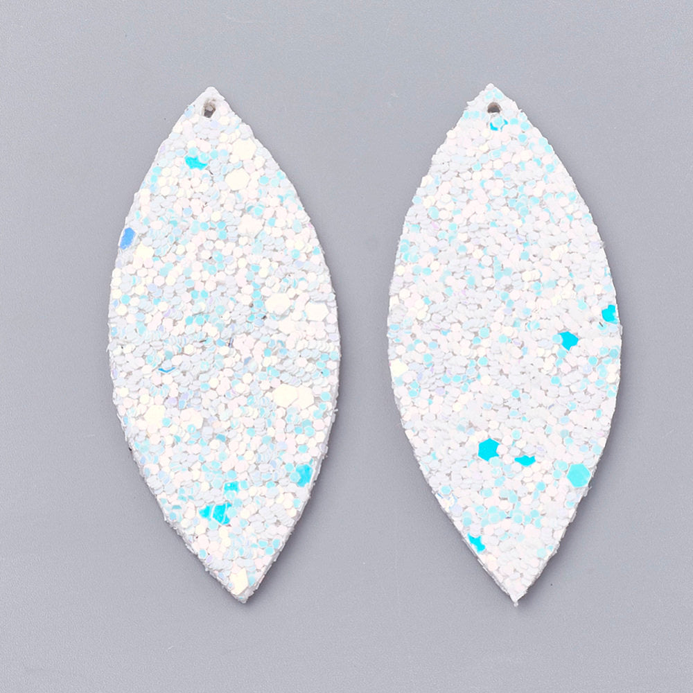 P242 - 10 pcs. White Multicolor Rainbow Faux Leather Dangle Charms Pendants - Marquise - 59mm (2.33") - Great for Earrings & Dangles! Double Sided