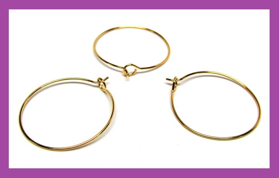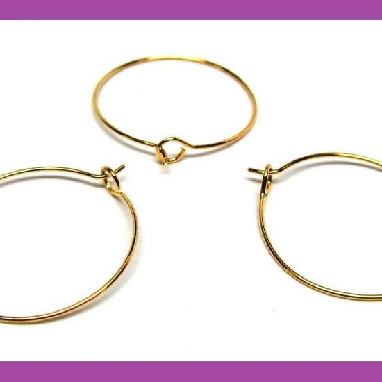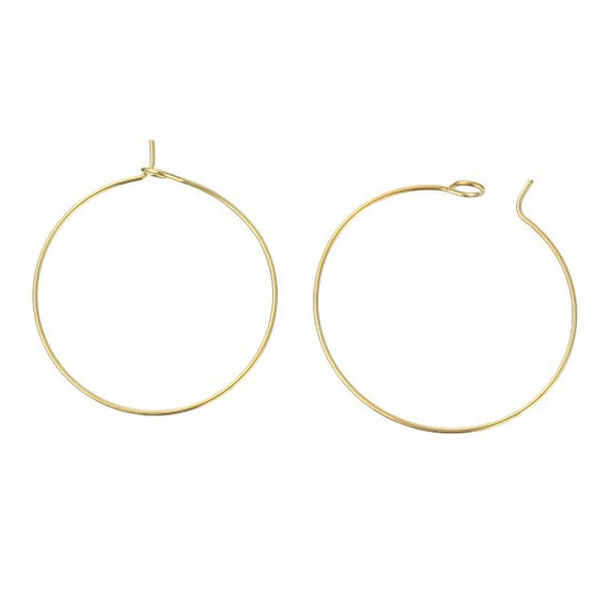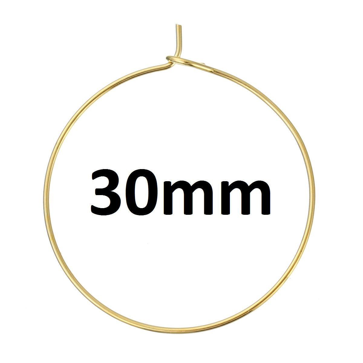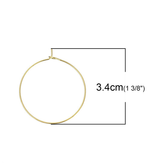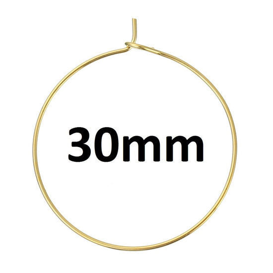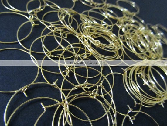 W009 - 100 Gold Plated Wine Charm/Earwire Hoop Rings - 30mm -20 Gauge