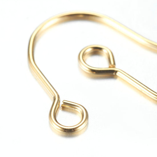 E368 - 100 pcs 304 Stainless Steel Golden Earring Hooks with Loop Hole - 18mm x 18mm - Hypoallergenic! Tarnish Resistant! 18K Gold Plated