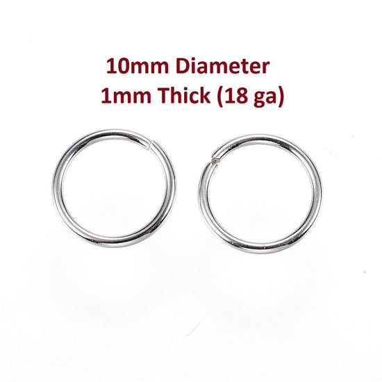 J006 - 100 pcs 304 Stainless Steel Open Jump Rings 10mm - 18 Gauge (1mm Thick) - Silver Tone - Tarnish Resistant!