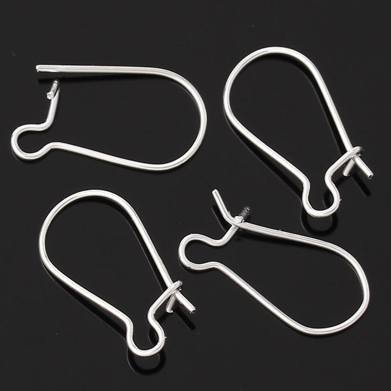 E027 - 100 pcs (50 Pairs) Silver Plated Kidney Earwire Earring Hooks -18mm x 10mm - SMALL