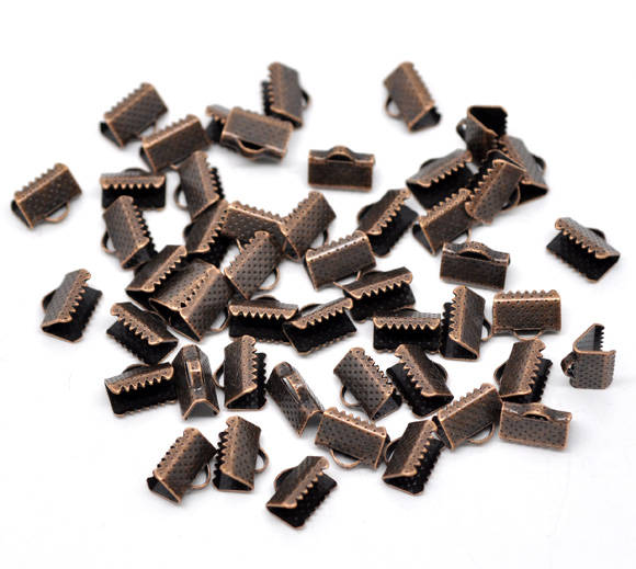 Brand NEW 100 Antique Copper Textured Ribbon Crimp End Caps
