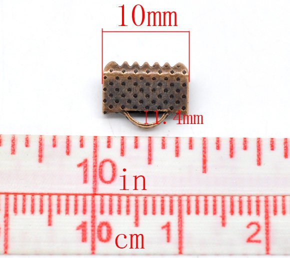 BA022 - 100 pcs. Antique Copper Textured Ribbon Crimp End Caps - 10mm x 8mm - Perfect for 3/8" (10mm) Ribbons and Cords!