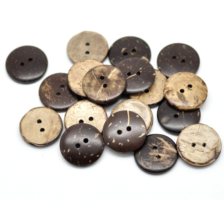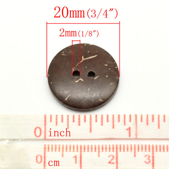 BU015 -100 pcs Coconut Buttons- 20mm (0.79") - 2 holes - Brown