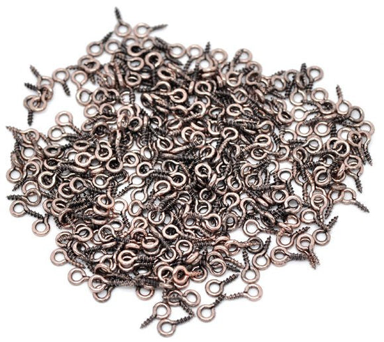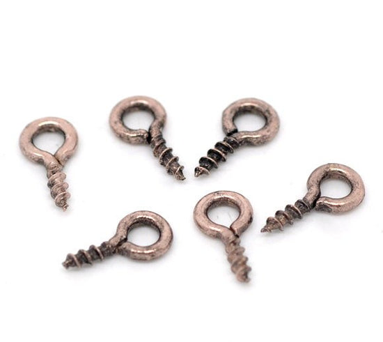 BA006 - 100 pcs. Copper Tone Screw Eyes Bails Top Drilled - 8mm x 4mm