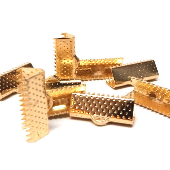 CR015 - 100 pcs. Gold Plated Textured Ribbon Crimp End Caps - 16mm x 8mm