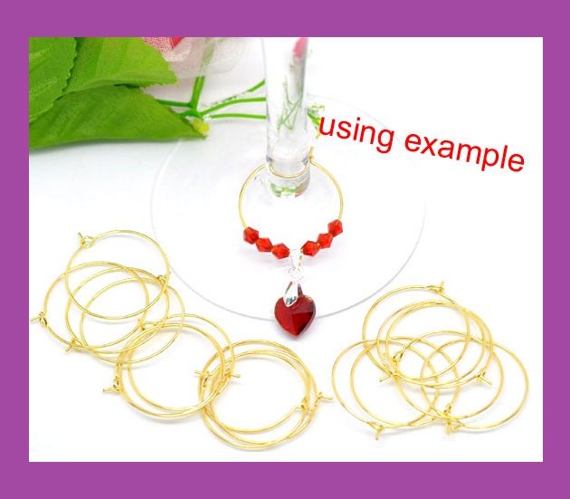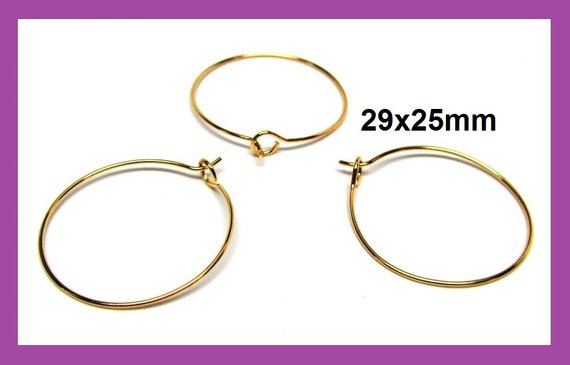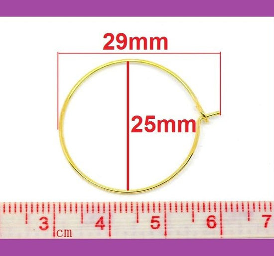 W004 - 100 pcs. Gold Plated Wine Charm/Earwire Hoop Rings - 29mm x 25mm-21 Gauge