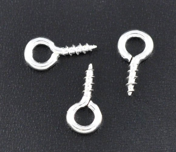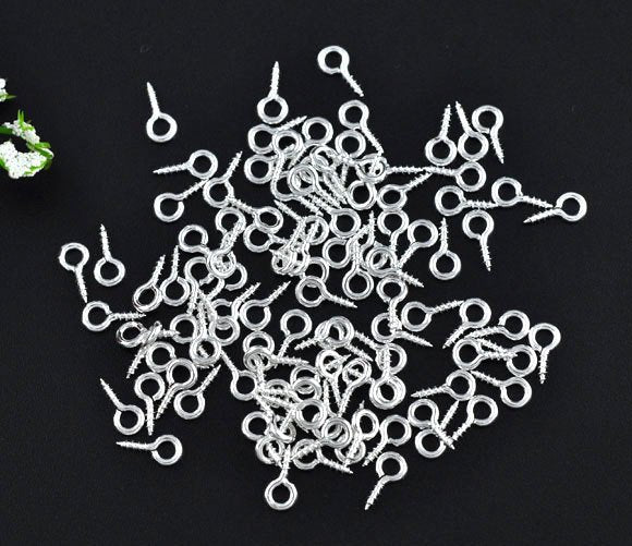 BA004A - 100 pcs. Silver Plated Screw Eyes Bails Top Drilled - 8mm x 4mm