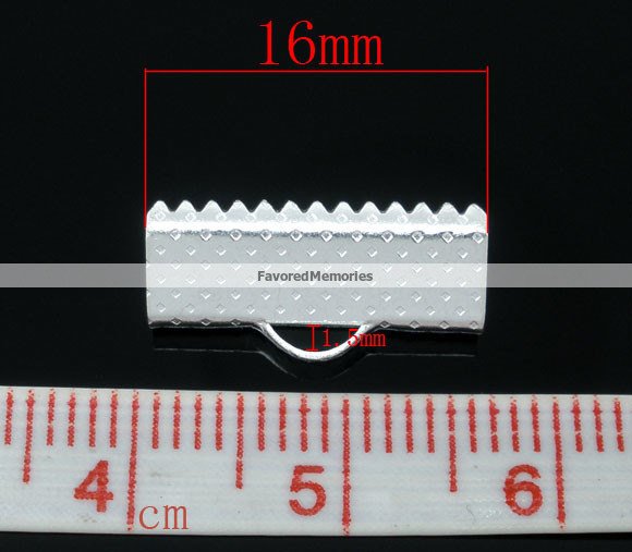 CR017 - 100 pcs. Silver Plated Textured Ribbon Crimp End Caps - 16x7.5mm