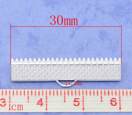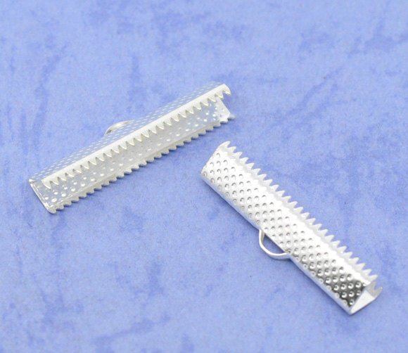 BA043 - 100 pcs. Silver Plated Textured Ribbon Crimp End Caps - 30x7.5mm